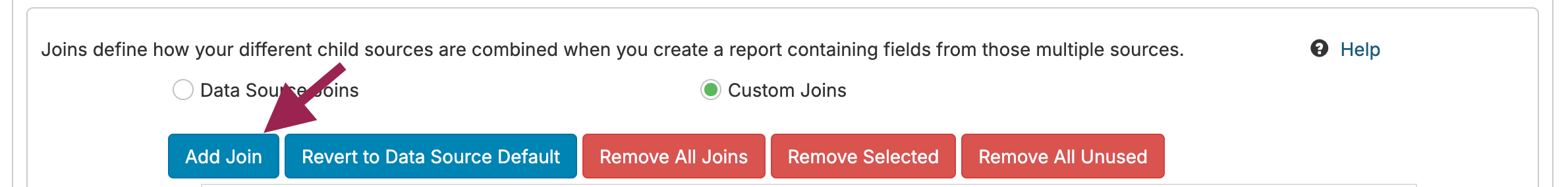 From here, we'll toggle over to customizing joins, and do Add Join: